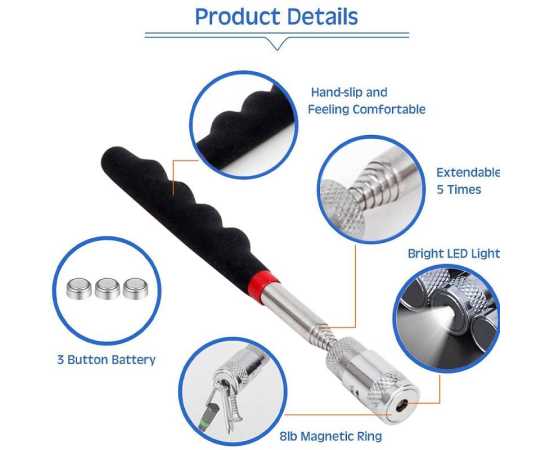 Mini Portable Extendable Telescopic Magnet With Light