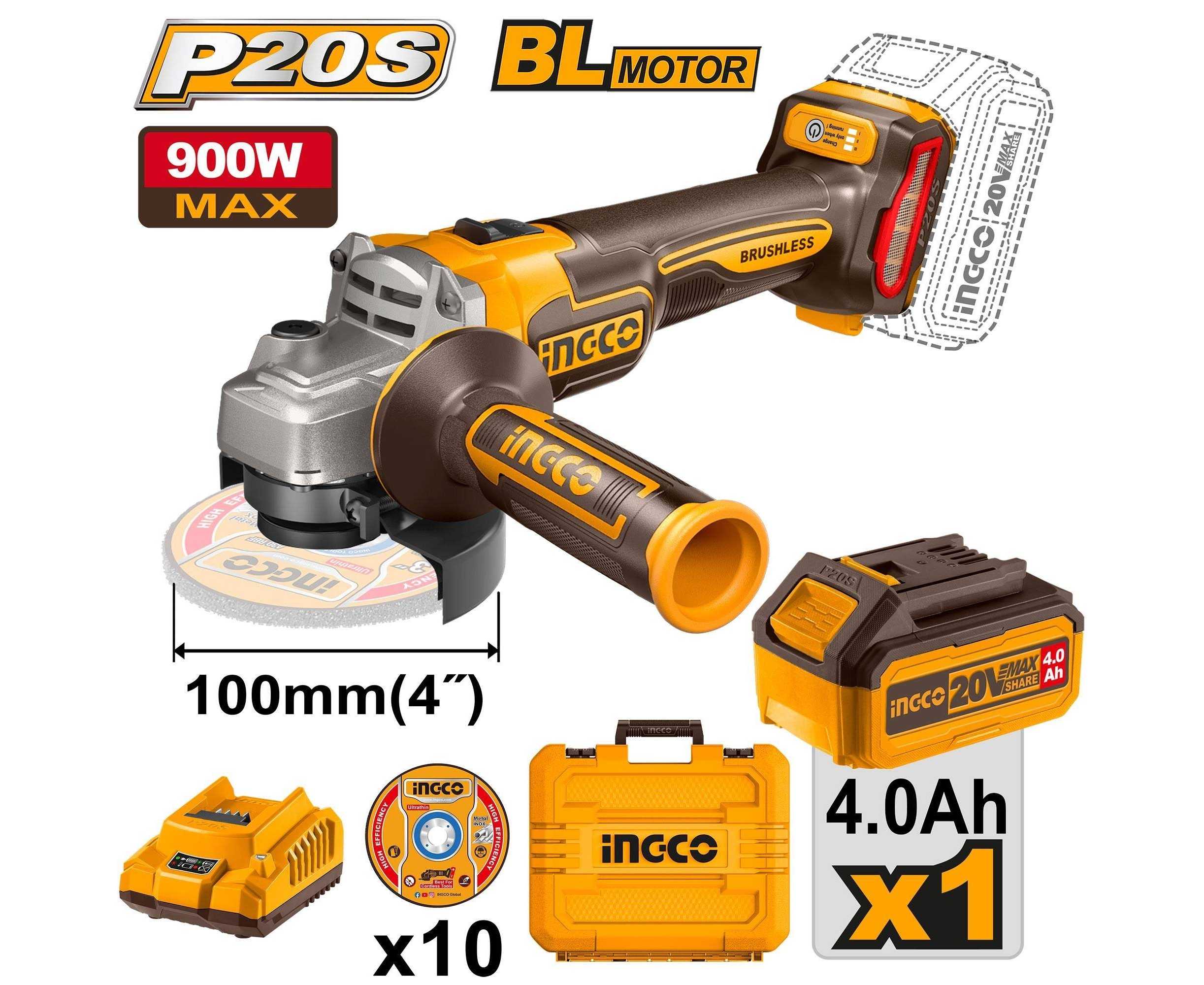 Ingco Cagli211041 Cordless Angle Grinder Charger Battery Included