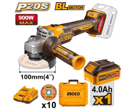 - AT - Ingco CAGLI211041 Cordless Angle Grinder Charger Battery Included