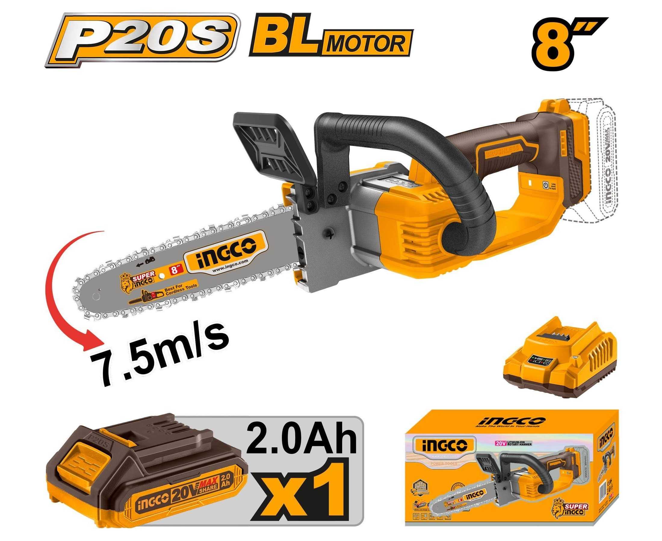 - AT - Ingco CGSLI20851 Cordless Chain Saw Charger Battery Included