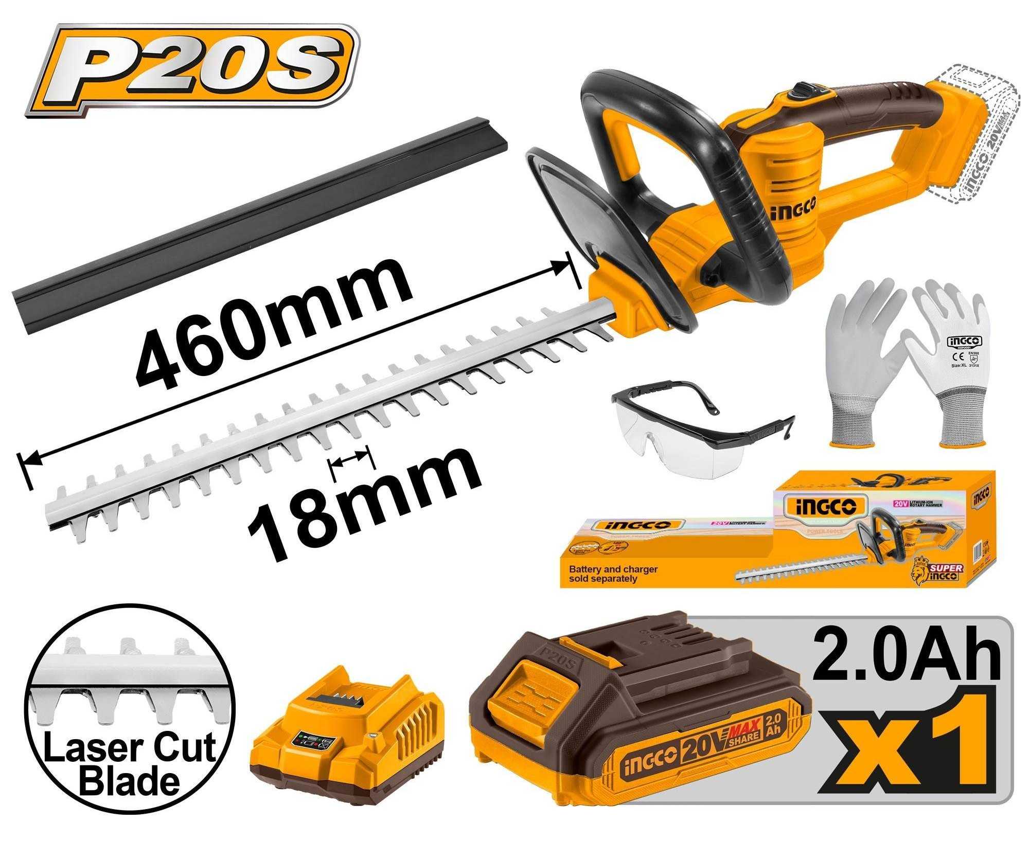 - AT - Ingco CHTLI20461 Cordless Hedge Trimmer Charger Battery Included