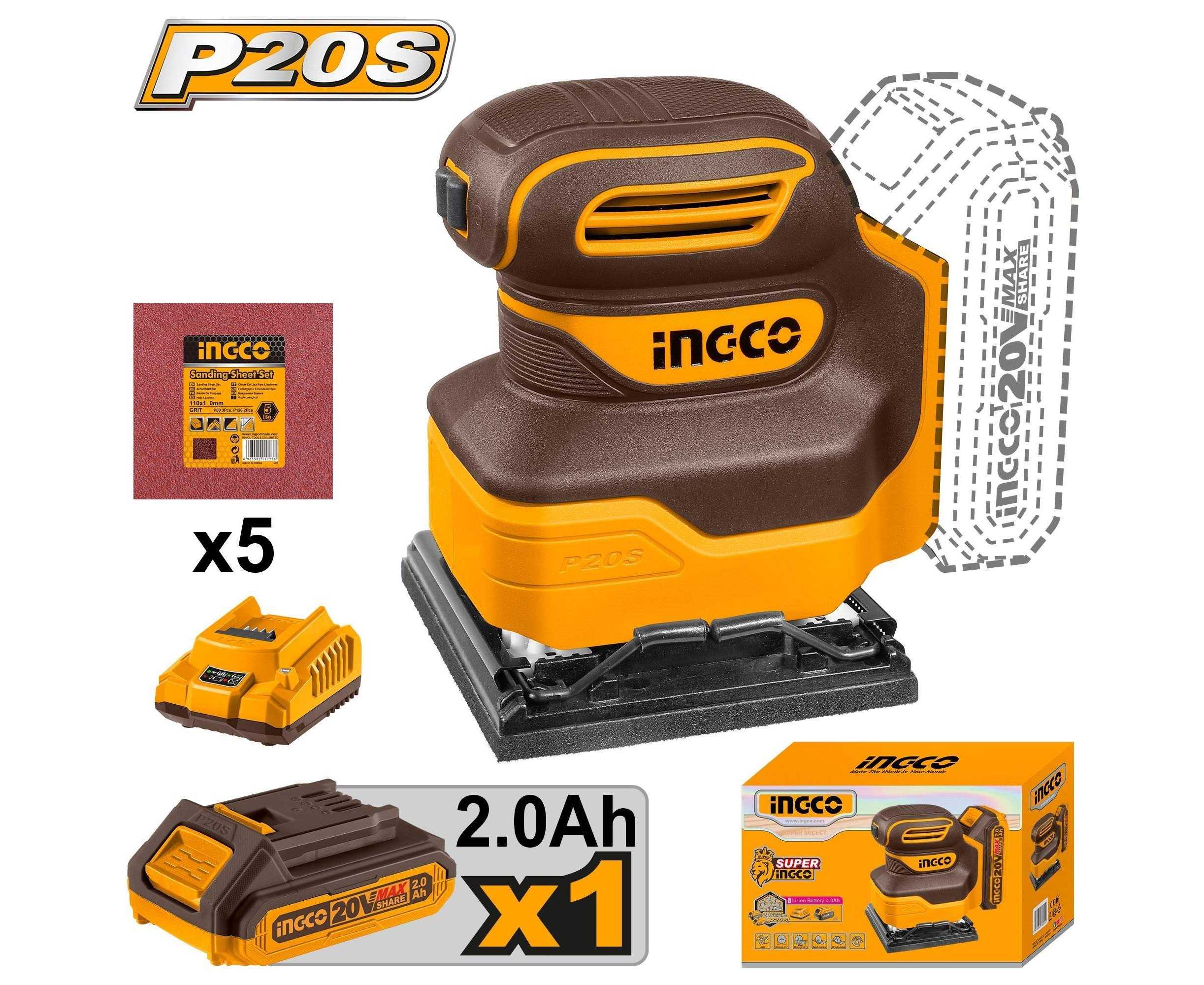 Ingco Cshsli20141 Cordless Sheet Sander Charger Battery Included