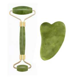 Jade Facial Roller And Gua Sha Stone Duo, Face Roller And Massager
