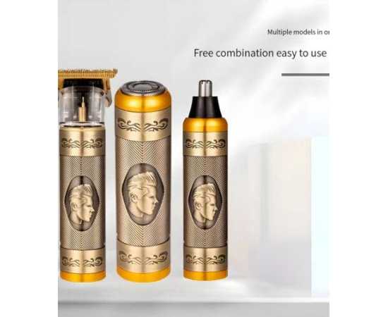 - 3-In-1 Vintage Grooming Set USB Rechargeable Multi-Functional Hair Clipper, Shaver, And Nose Trimmer For Men