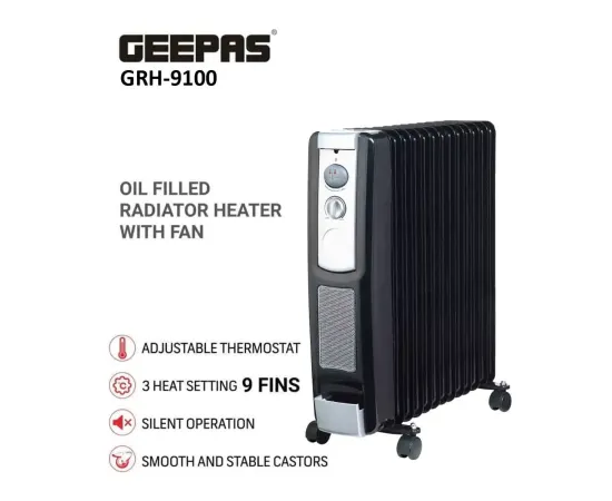 Geepas 9-Fin Portable Electric Oil-Filled Radiator Heater