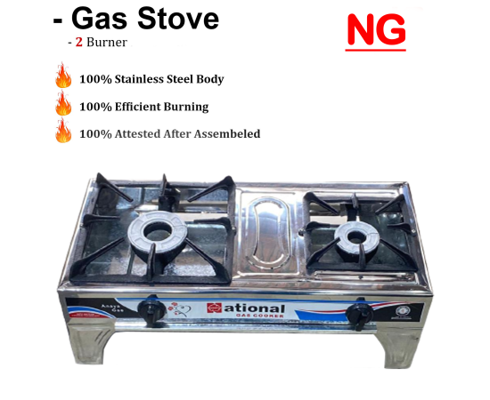 Gas Stove 2 Burner Fully Stainless Steel Body Gojra 101 Ng
