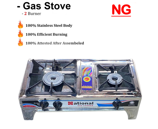 Gas Stove 2 Burner Fully Stainless Steel Body Ng Twin Steel