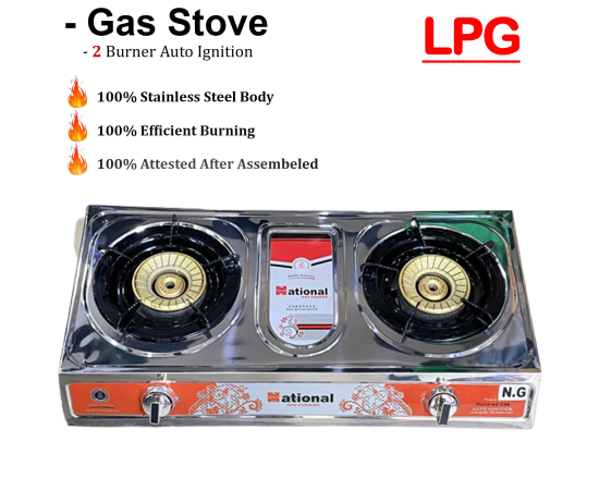 Gas Stove 2 Burner Stainless Steel Body Lpg R-B Fully Auto Ignition