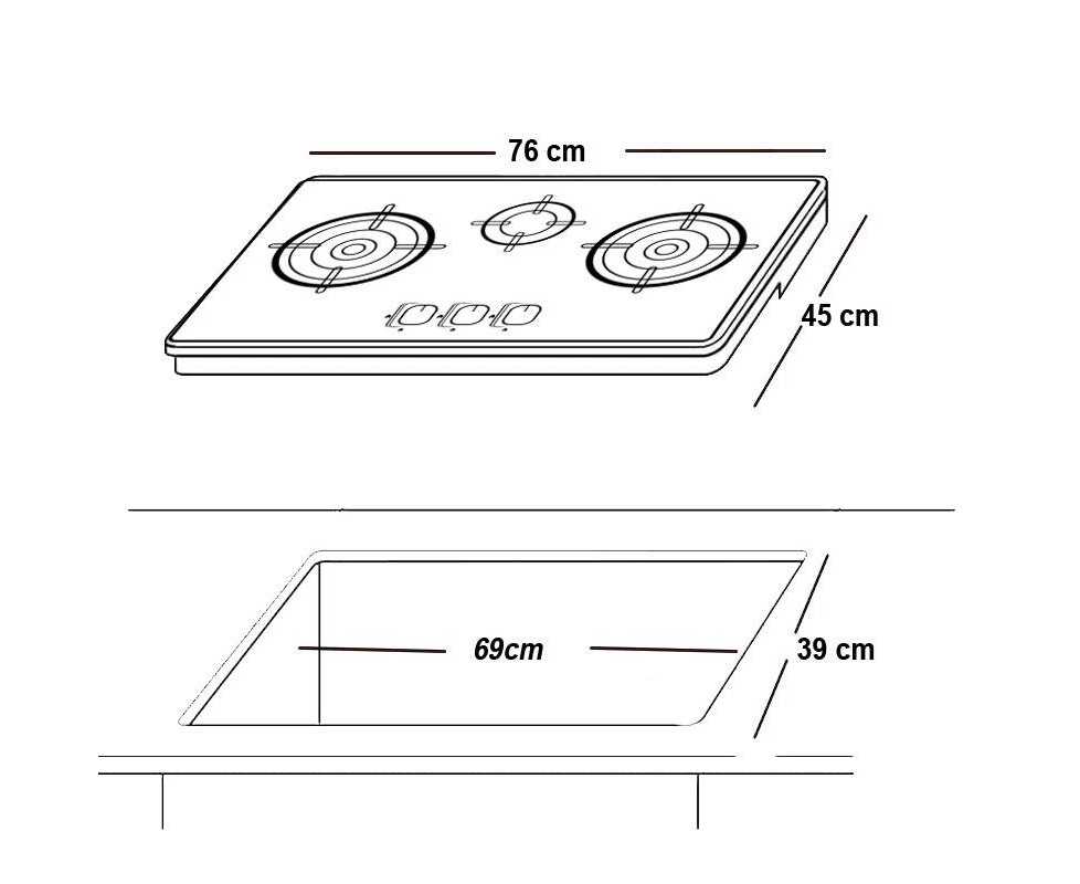 We took our own experience of gas cooking, and then researched the opinions of owners and professional. 3 burners 2 heatrez 1-hand ignition Sword knobs Steel pan supports Flexible flame power Easy to clean Battery Ignition Installation dimensions: (ID/W/D) 740 mm x 430 mm Appliance dimensions: (W/D) 635 mm x 350 mm Net weight (kg)