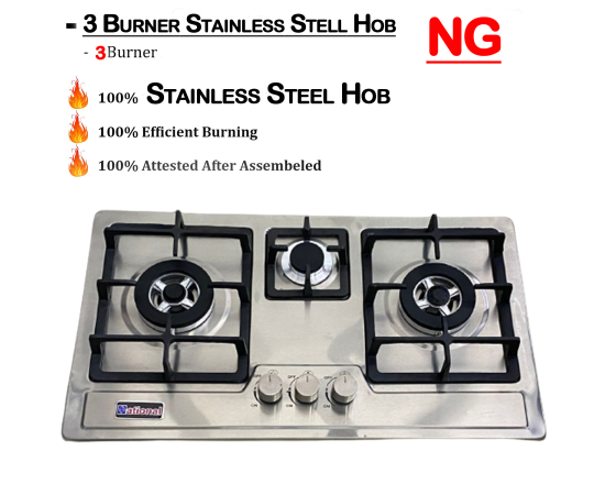 Kitchen Hob Q National 3 Burner Hob Steel B New Technical Blue Flame