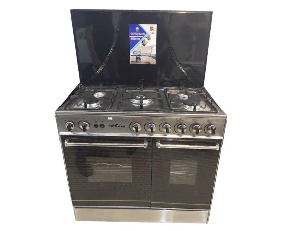 National Plus 5 Burner Gas Cooking Range - Black & Silver