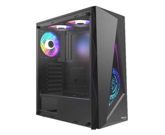 ATX and M-ATX Support 3 Pre-Installed RGB Fans Fans Support: Up to 6 Fans Side Panel: Tempered Glass USB3.0*1+USB2.0*2+HD Audio Weight 0.7 kg Brand Boost Warranty 1 year Color Black, White