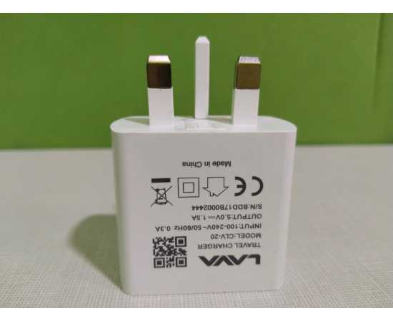 - Genuine Mobile Charger (LAVA) 5.0V=1.5A Smartphone/Tablet USBÂ