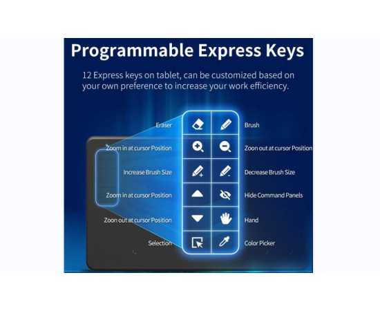 - This tablet has 12 shortcuts, enough for you to set more professional shortcut key functions,