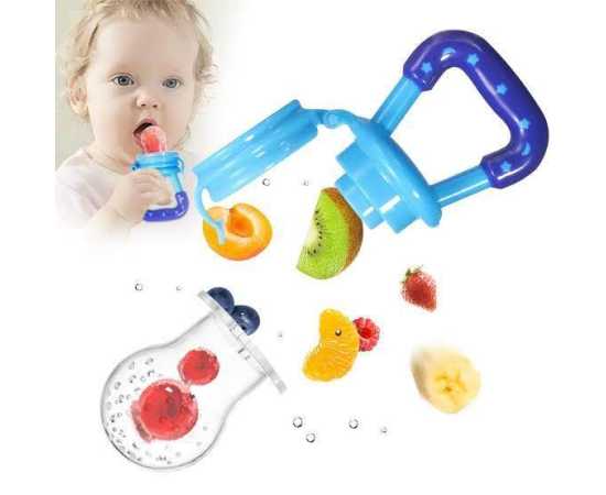 - Multipurpose Silicone Teether - Solve multiple problems at once with our 2-in-1 fruit pacifier feeder and teething toy. Specially designed to hold baby food while gently massaging the gums to encourage healthy teeth development.