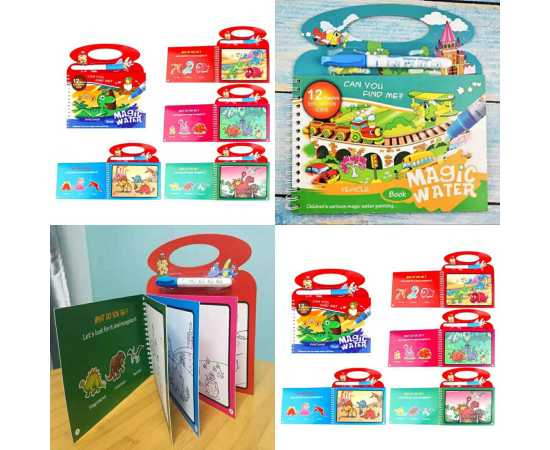 - AT - Magical Water Painting Book Toddler Early Education Toys Reusable Magic Drawing Coloring Book for Kids Children Montessori Toys 12 Pages - 1 Piece