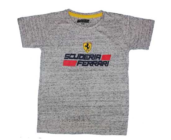 Sauderia Ferrari Round Neck Cotton Fabric Shirt - Light Grey