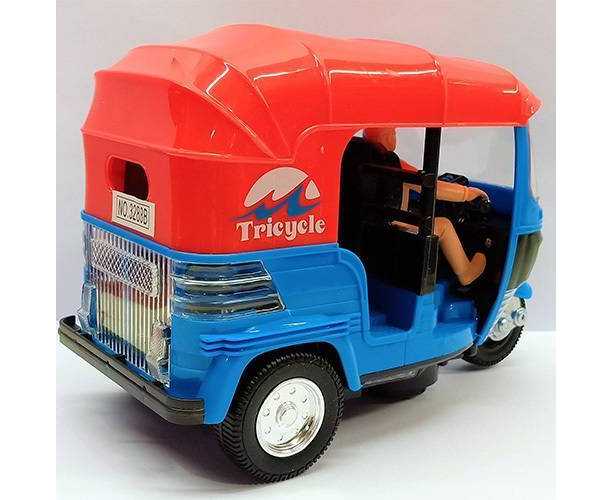 Plastic Pull Back Auto Rickshaw Toy with Sound & Flashing Light