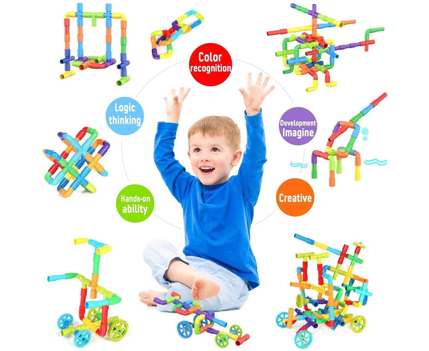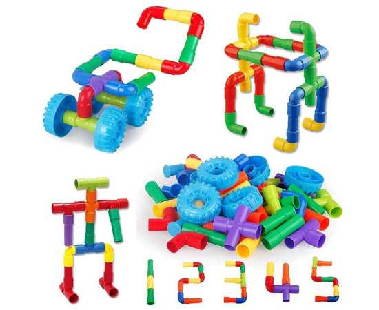 - FUN & SIMPLE CONCEPT BUILDING BLOCKS: Our 250 pieces of tube building toys use a simple pipe splicing concept that can DIY create more than 200 figures or animals or car models, so that young children can enjoy more construction fun. This set of STEM toys is more perfect for children aged 3-4-5. Different shapes and colorful tube parts help your kids learn colors. Durable interlocking toys ideal for building structures, animals, aircraft, cars, shapes, robots, and more children can imagine