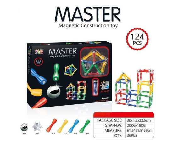 Magnetic Bar Building Sticks Block Toy (124 Pieces)- Multicolor