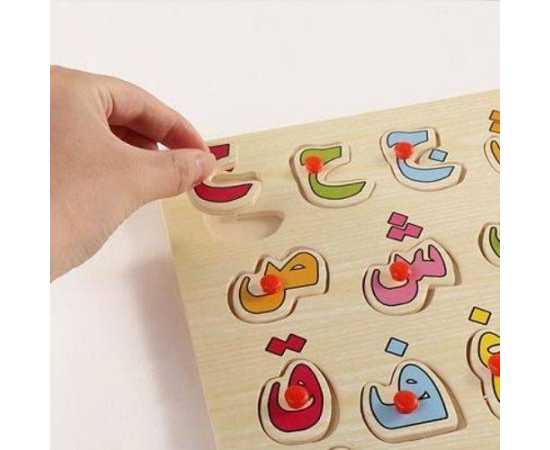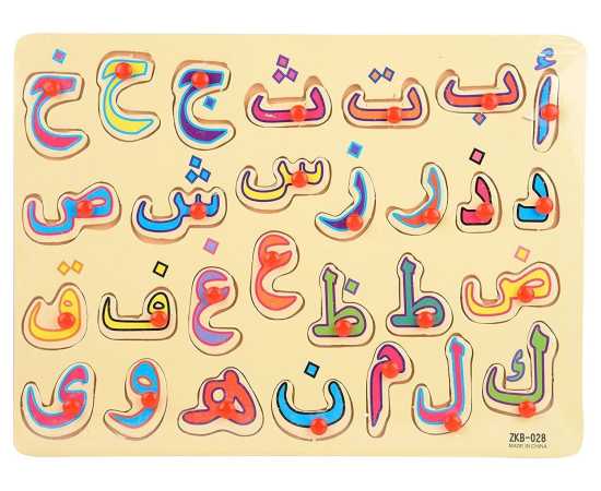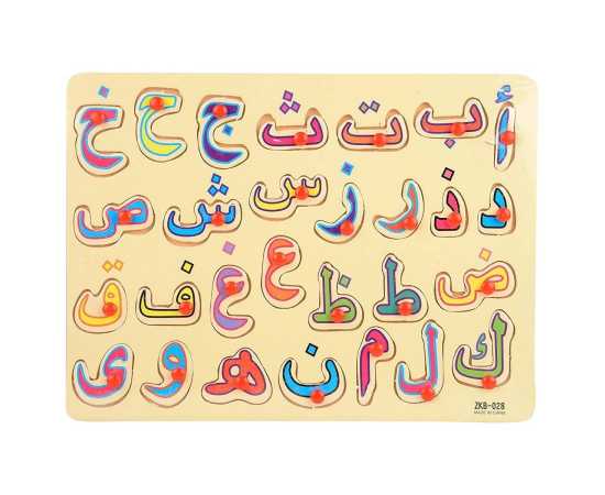 Arabic Urdu Alphabet Board Peg Puzzle (Wooden), 28 Individual Wooden Pieces With Wooden Board