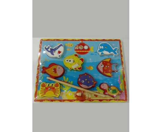 - Sea Animal Puzzle Board With Fishing Rod - Wooden Toys