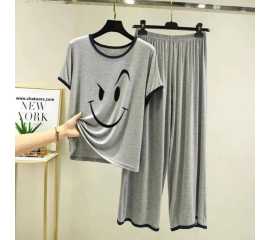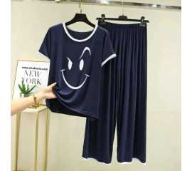 Round Neck Cotton Printed Design Night Suit For Ladies - 0021