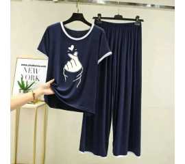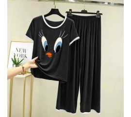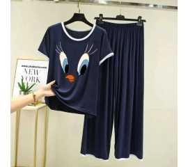 Round Neck Cotton Printed Design Night Suit For Ladies - 0019