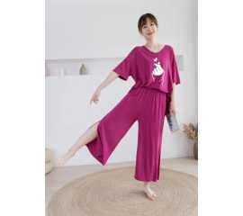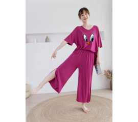Round Neck Cotton Printed Design Night Suit For Ladies - 0020