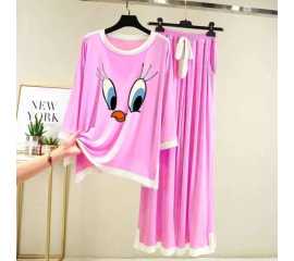 Round Neck Cotton Printed Design Night Suit For Ladies - 0016