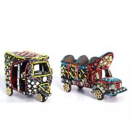 Pack of 2 Handmade Truck & Risksha Craft Wooden Sailing Truck