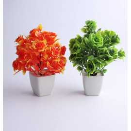 Pack Of Two Orange & Green Tree Artificial Decoration Piece