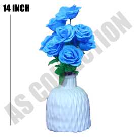 Nordic Luxury White Vase Plus Blue Rose for Room Decor & Artificial flowers