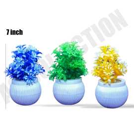 Pack of 3 Mini Green Plant Artificial Decoration Piece with pot Best for home