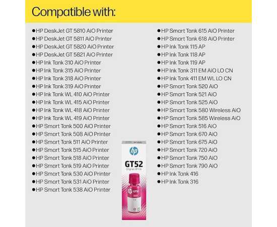 - HP GT52 Ink Bottle (Magenta)