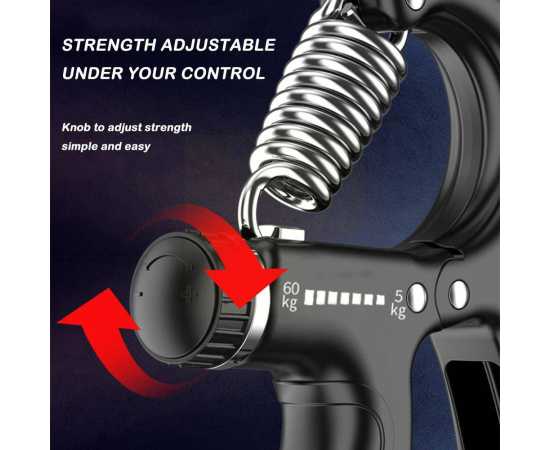 - This adjustable grip strengthener features a resistance range from 5 to 60 kg, allowing you to customize your workouts for maximum effectiveness.Â