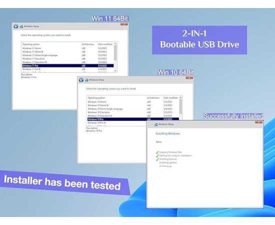 - 32GB Bootable USB Drive 3.2 Gen, Supported UEFI and Legacy, works for any PC/Laptop, ( the main function is to install windows 10 & 11 ).