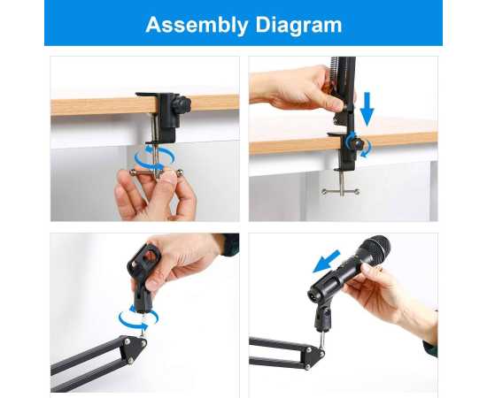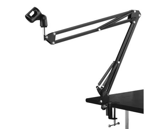 - Professional kit includes microphone scissor arm stand, desk mounting clamp, and microphone clip